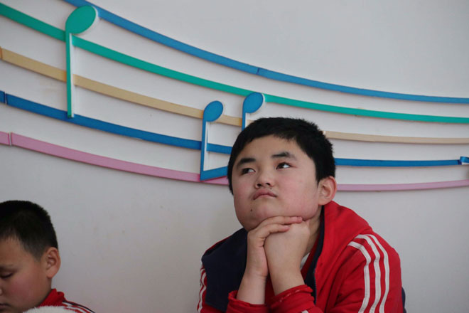 孩子们为了表达对老师的感谢,用自己擅长的乐器同志愿者们合奏器乐《送别》,其他的同学伴着音乐唱出了优美的歌声。