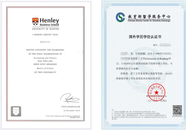 国外大学研究生硕士学位证书与中留服研究生学历认证证书