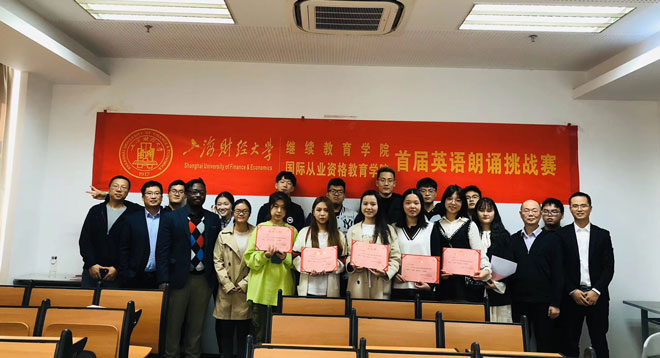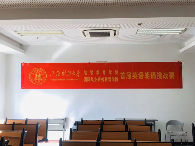 2019年11月8日上海财经大学继续教育学院举办了首届英语朗诵挑战赛,国际留学的学生与国际航空的学生,用于参加报名。参加报名的学生积极准备朗诵内容,为比赛当天做好充足的准备。
