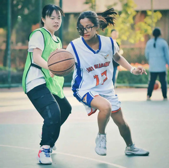 为提高同学们对于体育锻炼的积极性、增强个人身体素质,华二紫竹国际学院特别开展10月体育周活动。10月12日至22日,首届校园篮球赛火热进行。全校17个班级全部参加,每班分别派出4-5人一组的男、女两支参赛队伍。