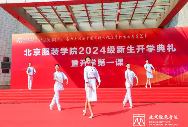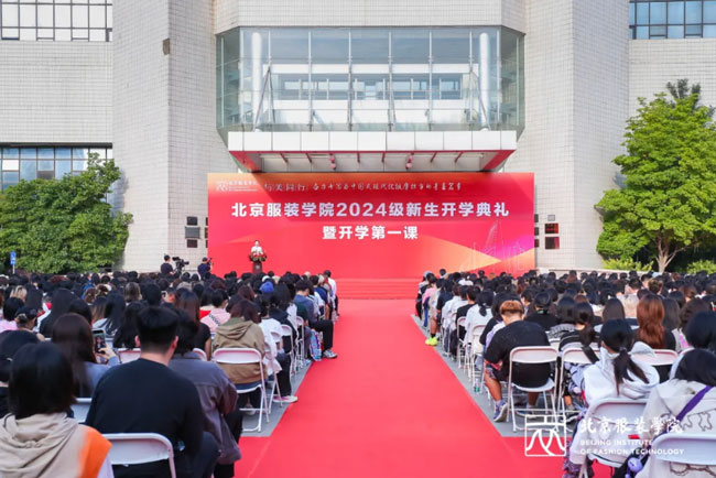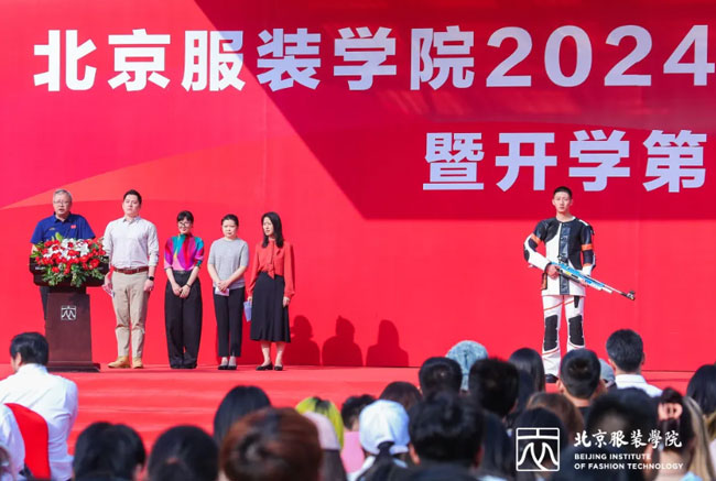 北京服装学院党委书记周志军,院长贾荣林,党委副书记姜孔桥、李伟书,党委常委、副院长詹炳宏、王峥,副院长邹游,党委常委、纪委书记李慧出席,89级校友毛继鸿及各二级学院、相关职能部门负责人、学生和家长代表共同见证了这一重要时刻。本次开学典礼暨开学第一课以“奋力书写为中国式现代化挺膺担当的青春篇章”为主题,通过丰富的讲述和生动的服装动态展演,将艺术、科技与思政完美融合,展现了北服人独特的精神风貌与时代担当。北京服装学院官方视频号同步现场直播。