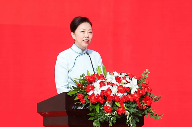 在庄严的升国旗仪式后,党委书记周志军发表了热情洋溢的致辞,开启了一堂别开生面的“开学第一课”。她代表学校全体师生员工向新同学的到来表示最热烈的欢迎。她深情回顾了北京服装学院65年的办学历程,从解决人民穿衣用布问题的初创时期,到艺工融合、引领时尚的现代发展,学校始终与时代同唿吸、共命运,每一步都凝聚着北服人的智慧与汗水。她详细阐述了学校未来的发展蓝图,明确了高质量建成具有国际影响力的高水平特色型大学的目标,寄语全体新生继承和发扬“与美同行”校训精神,在推进强国建设、民族复兴伟业中展现青春作为,奋力书写为中国式现代化挺膺担当的青春篇章。