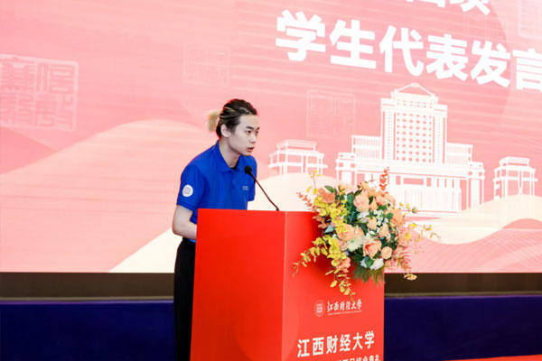 中俄231班周安达同学作为学生代表发言,回顾了两年来的学习生活。他谈到,学院始终秉持“以生为本”的育人理念,构建起双向互动的师生交流生态,并将“跨文化学习”意识培养融入日常教学,不仅夯实了专业基础,更培养了开放包容的国际视野。