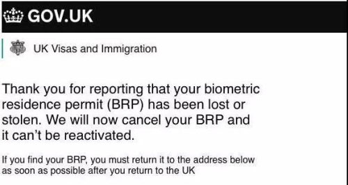 丢失BRP卡的情况可以分为在英国境内、境外两种。我们先来讲境外丢失。