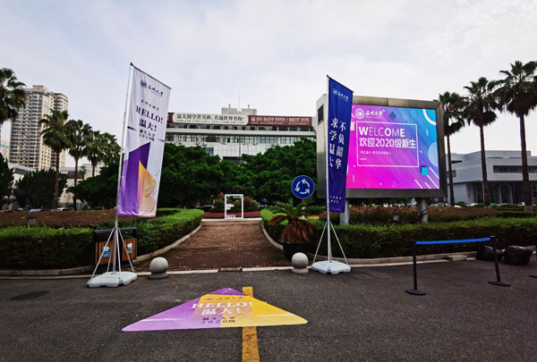 “国际紫”和“幸运黄”装扮一新的国际楼,一场“有温度”的开学仪式正在等待小萌新的到来。