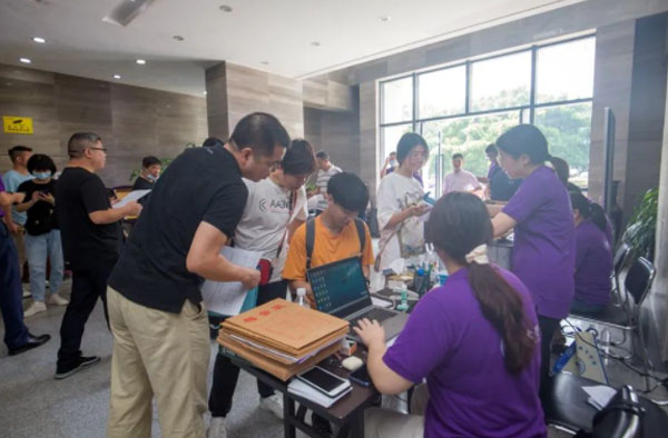 经过测体温、检查温州健康码之后,新生与家长一同走进温大学院路校区校门,踏入国际楼,开启WZUer的第一天。