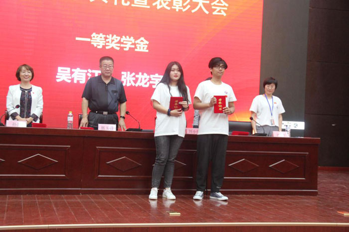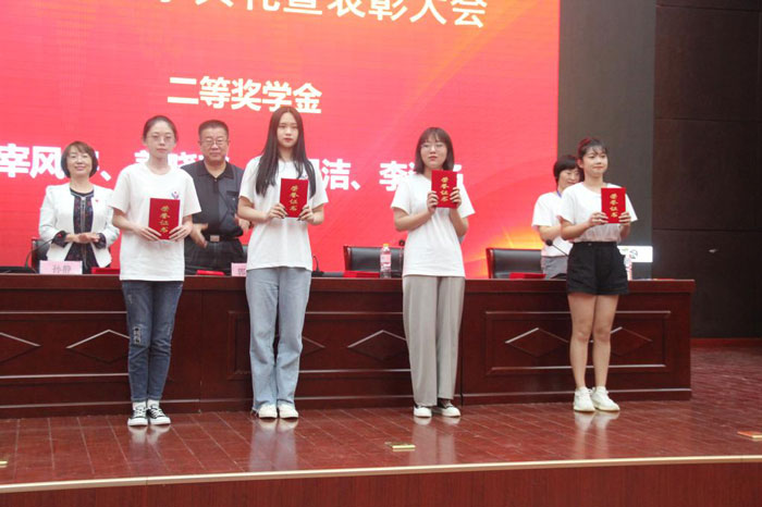 典礼上,孙静主任宣读了《关于表彰山东师范大学出国留学培训基地2019-2020学年先进集体和优秀个人的决定》,分别授予吴有江、张龙宇等9名学生优秀生奖学金;田知雨、张毓宁等同学文体活动积极份子。出席典礼的领导和老师们为获奖同学颁发荣誉证书。