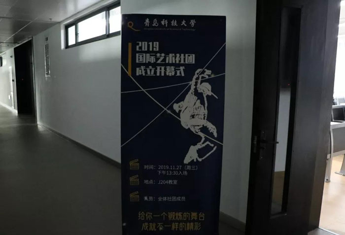 2019年11月27日下午,青岛科技大学2019级韩国际艺术社团成立开幕式在剪彩与礼花中圆满结束,我校留学培训基地张同雷主任及其他社团指导老师共同出席本次开幕式,为加入社团的学生鼓励致辞。