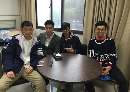 昨日,2013级学生李元昊(澳洲莫纳什大学会计专业)、罗远哲(新西兰梅西大学建筑测量专业)、王子豪(新西兰奥克兰大学商务管理专业)和王昊(英国UEA经济管理专业)借国外圣诞放假回国之际,回华师看望我们IFC预科班的老师们。