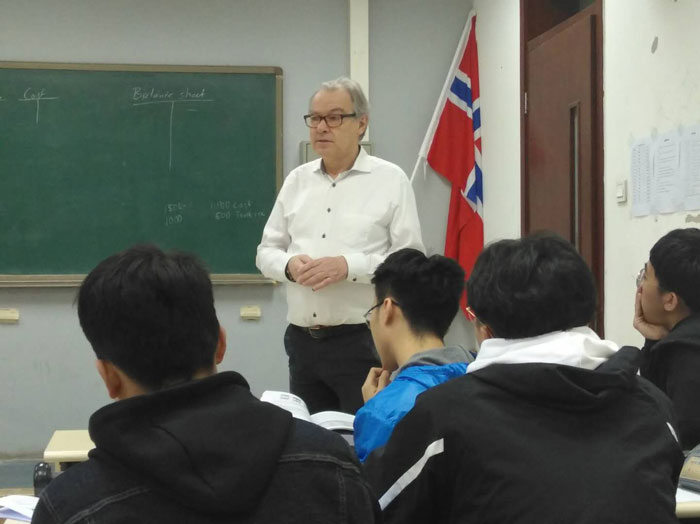 按照北京理工大学北欧留学项目的教学规划,本学期要完成Strategy Control (战略管理)、Management Accounting(会计学管理)共计30学分的ECTS课程。结合学生实际情况,在顺利完成Strategy Control 课程之后,瑞典克里斯蒂安斯塔德大学经济学院院长、ECTS课程项目主任Erling Emsfors教授来到北理工,进行教学检查,并亲自讲授Management Accounting课程。