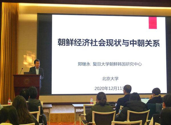 2020年12月11日,北京大学外国语学院朝鲜(韩国)语言文化系主办的第五十二次“感知韩国系列文化讲座”在民主楼208会议室举行。本次讲座的主题为“朝鲜社会现状与中朝关系”,主讲人是复旦大学国际问题研究院郑继永教授。朝(韩)语系主任王丹教授等系内师生五十余人和延边大学朝鲜韩国研究中心的两位老师到场聆听了讲座。