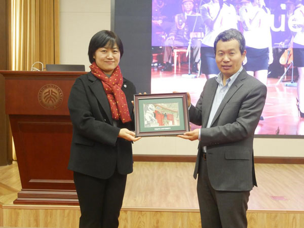 朝(韩)语系主任王丹教授代表全系师生向演讲嘉宾致谢,并表示希望同学们通过感知韩国系列讲座等第二课堂活动,进一步培养学术兴趣和拓宽学术视野。